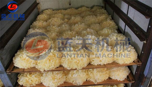 如果銀耳采收的時候天氣睛好,藍天機械強烈建議您采用日曬與銀耳烘干機兩者相結合,這樣制作出來的干銀耳香氣高,品相好,同時烘干成本更好。