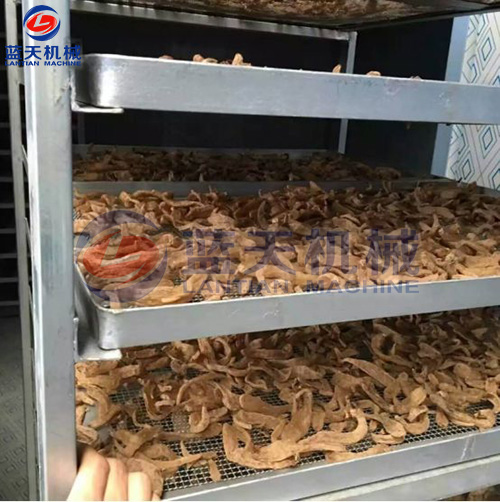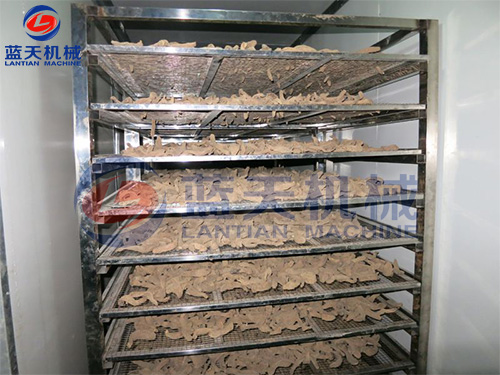 天麻蒸制后,先在烘干機(jī)或烘房?jī)?nèi)烘至半干。烘干初期,溫度保持在50~60℃,并保持適當(dāng)通風(fēng)。以后每小時(shí)提高0.5℃,逐步提高至65℃。烘干初期若溫度過(guò)高,天麻容易出現(xiàn)糠心;溫度過(guò)低,通風(fēng)不好時(shí)天麻容易變質(zhì)。若天氣晴好,也可日曬夜烘,降低烘干成本。