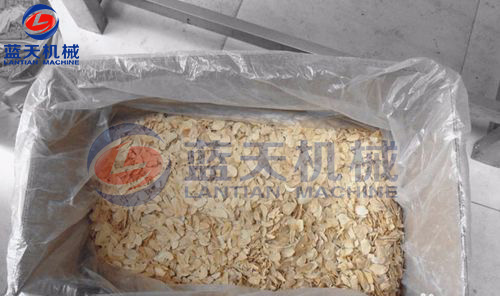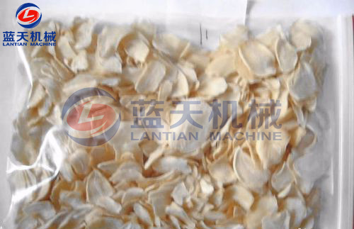 烘干完成的優質蒜片呈米白色,平展完整,無碎片。烘干完成,待蒜片溫度至常溫后,將蒜片裝入塑料袋中,使干蒜片間的水分均衡,時間約24-48小時。