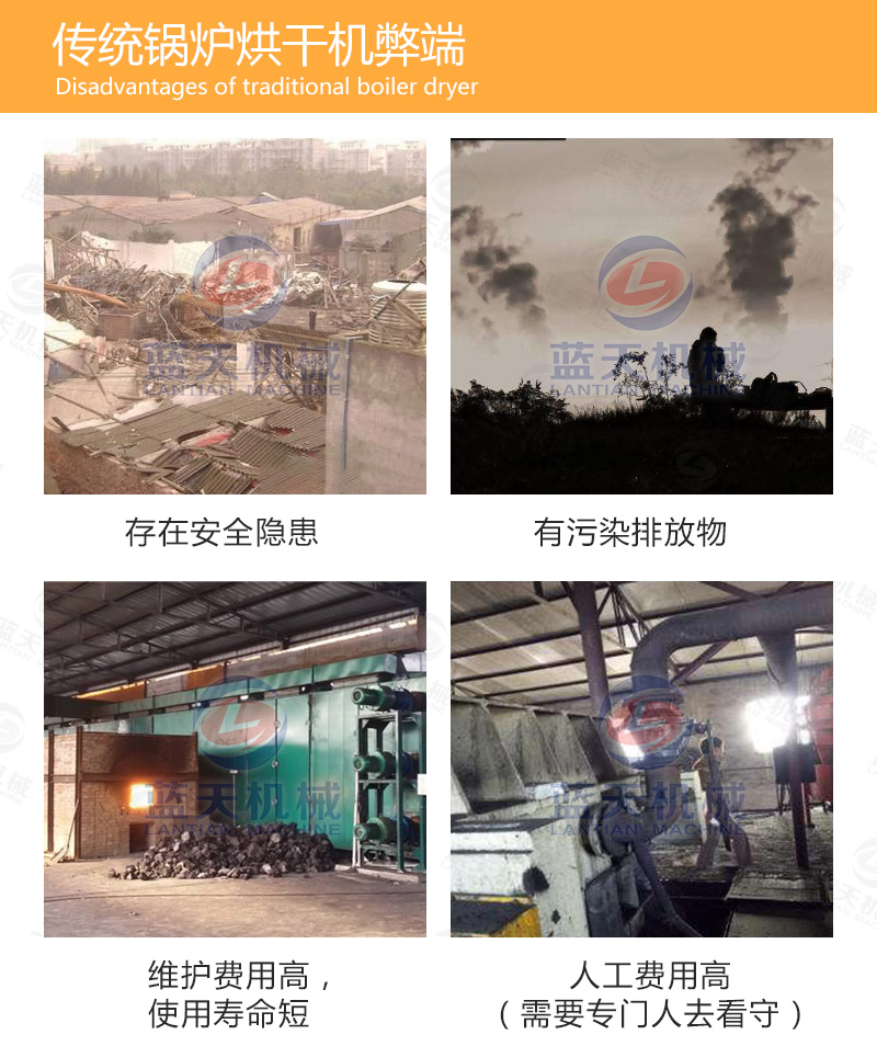 1.熱泵主機產生的熱量經過轉換器轉換成溫度適宜的純凈熱風由風機輸送到烘干機內部;