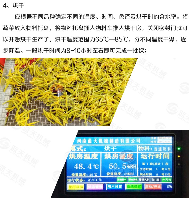 蔬菜烘干機脫水速度快,而且烘干出來的效果好,是因為蔬菜烘干設備在烘干時提供的風為熱風,溫度可以根據客戶烘干的物料進行相應的調整,智能控制面板,方便快捷準確。