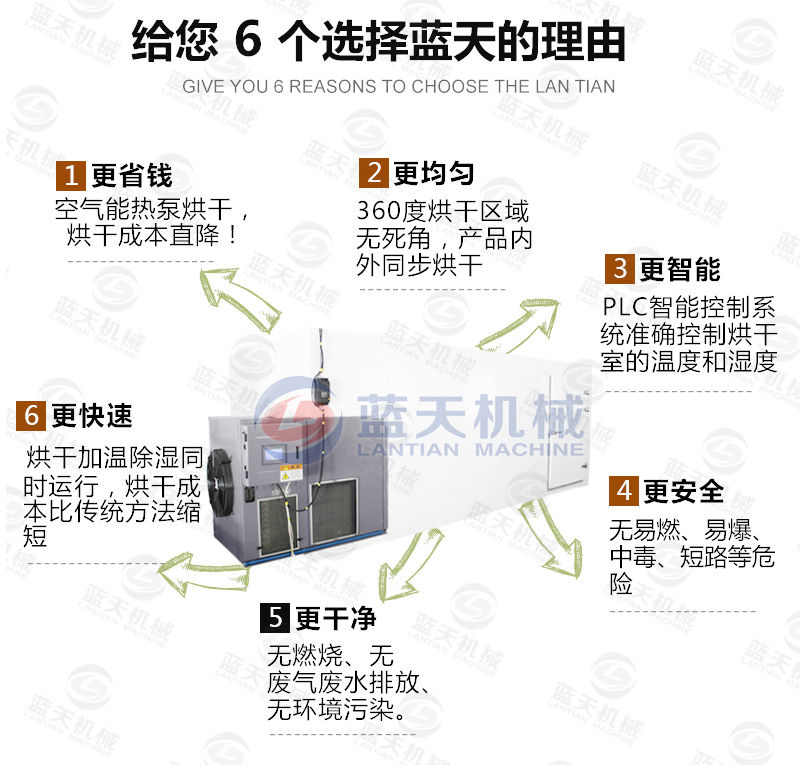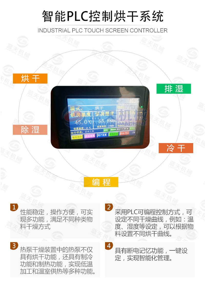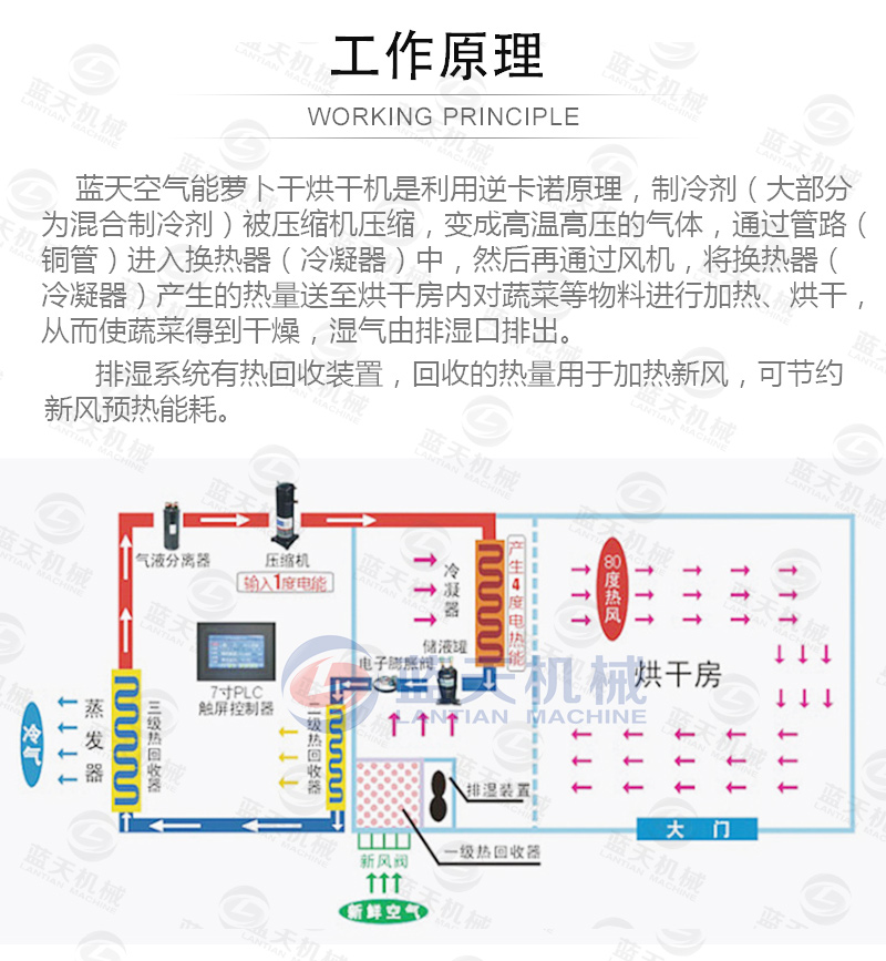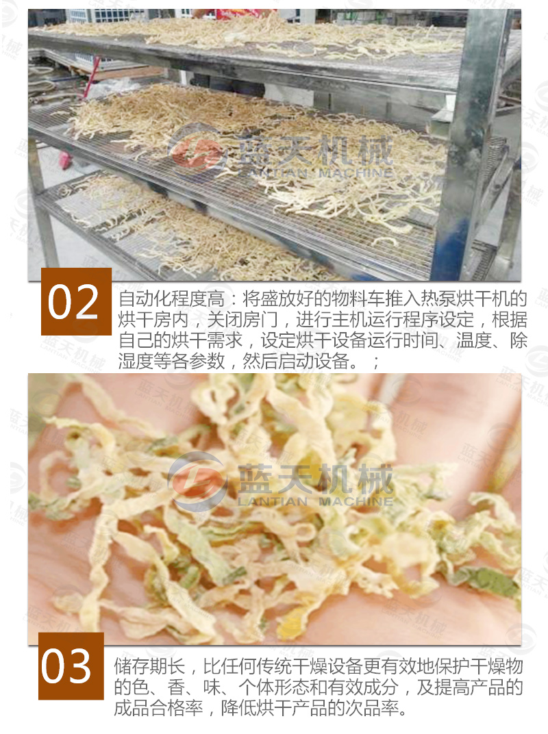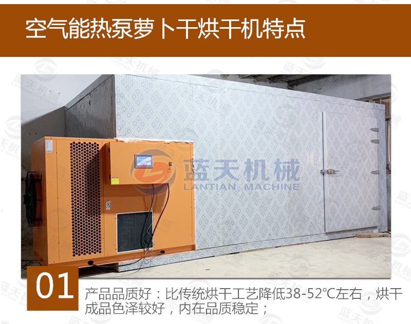 空氣能熱泵蘿卜干烘干機,在蘿卜干烘干過程中的優點: