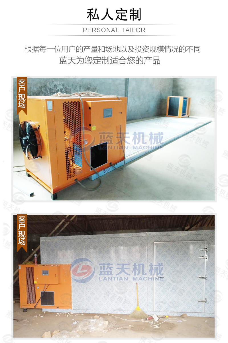 現在使用基于空氣能技術的蘿卜干烘干機,大大提高了生產效率,制作出來的蘿卜干既香又脆,大概約4-6小時就可以烘干一個批次。蘿卜干烘干機的可選功率為3P,6P,12P等型號,蘿卜干烘干機價格因此也不盡相同,可以根據烘房和產量大小進行不同型號的搭配,滿足產能設計。
